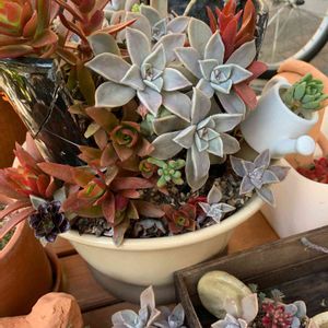 半年前に割れた大きな鉢を二つ合わせて 寄せた多肉ちゃん達🌵 寒くなってイキイキしてきてる🌵🍁