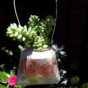 つぶつぶの日に参加しま~す🙋 快晴で日差しが痛いです🌞 まゆゆさん作の薔薇のリメ缶に新玉つづりを入れました😆🌱 新玉つづりはすぐポロポロになり無残な姿になってしまいます💦 今度こそ頑張ってねとエールを送りました🍀💕