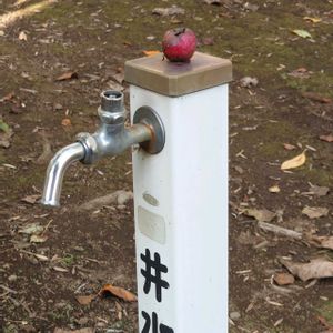 【1・2枚目】 おやっ👀 だれかのいたずらですネ🤭 あたりに落ちているプチりんご「アルプス乙女」をのっけちゃいました🤣 (農業試験場内にて) 【3枚目】 仲よしですが、オシドリではありません。カルガモです🦆🦆😀 (近くの川にて)
