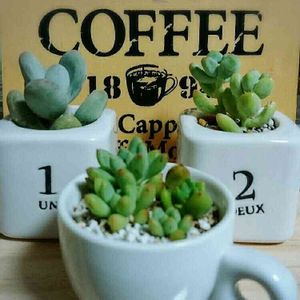 花フェスでゲットした小さな鉢に葉挿しやら脇芽やらの小さいのを植えてみました。鉢が可愛いからGS映えしますねw