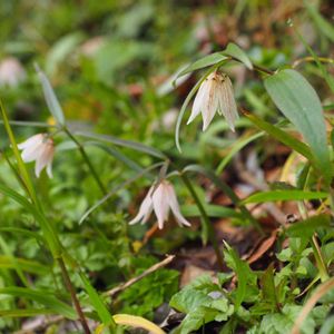 初めて見るバイモです!(*゚∀゚*)💖 覗いて見たお顔の模様が違うね! 「イズモコバイモ」出雲小貝母 ユリ科 島根県の固有種 愛好家の方に見せていただきました。 🏷白い水曜日♡