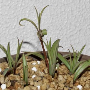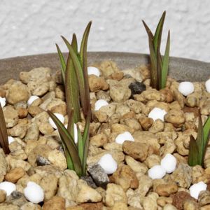 今年の春、2cmくらいの芽が出たのですが、葉が展開することも無くしおれて地上部は枯れてしまいました。😂 わずかな期待を持って、鉢から掘り出してみると球根は生きていました。😄 やったぁあ😆♥