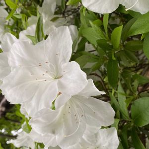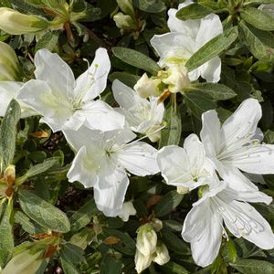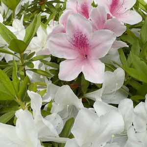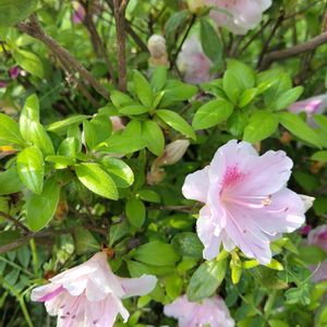 💗🩷🤍うちのヒラドツツジ3色 と、花の咲いたツリージャーマンダー💜 毎年、消毒の効きも悪く 少ししか咲かないヒラドツツジは 花も大きくて見応えあります🤩 花が終わったらすぐに切り詰めてますが その後、また大きくなってしまい また切って、花芽を落としてると思います💦 💜ツリージャーマンダーは 一年中葉の色が🤍白くて素敵! 花はオマケの感じで 葉が主体で育ててます😙
