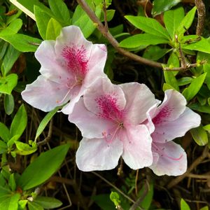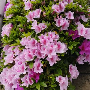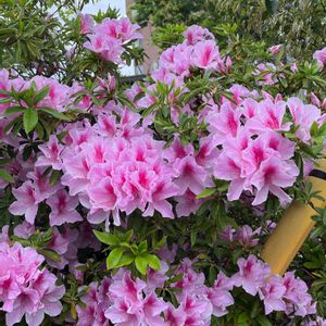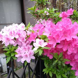 ヒラドツツジです✨ きっと二株なんでしょうけど、ひとまとまりに剪定されていて、2色で咲いているように見えるツツジちゃんです✌
