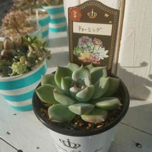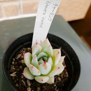 今回の一人ネットで多肉フェスティバル(通販でたくさん多肉を買っただけ)で1、2を争うお気に入りのチャーミング。 撮影者の腕が悪くて表現できてないけど、色が淡くて可愛いのです。