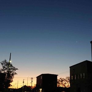 おはようございます。 2/1夜明けの空です。右の建物の上の方に夜明けの明星、金星が光っていますが、小さいので、分かりにくいと思います。今日もよろしくお願いいたします。