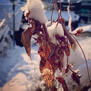 雪とウツギの枯葉 おはようございます😃 大雪が降った翌朝に撮ったものです。なんの葉っぱなのかは分かりません💦→おそらくウツギの葉っぱです😊 落葉樹は皆、葉を落としていますが…