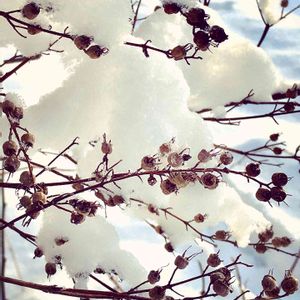 雪とウツギの実 おはようございます。 今朝の3枚目も、大雪の翌朝写したものです。 何の実なのかは、わかりません😅💦 →おくちゃんさん、やよいさんに教えて頂きました。ウツギの実です‼️😄 雪を被り、朝日に照らされた様が、綺麗に見えました😊