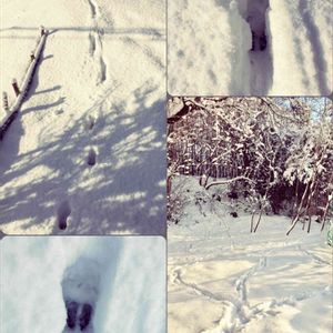 雪景色番外編 カモシカの足跡 おはようございます😃 昨夜〜未明にかけて、こちらでは雪が降りました☃️ 今朝の雪掻きは重かったぁ〜‼️😩💦 ついでにカモシカを探してみましたが、今朝は足跡すらなかったです🥲 このpicは以前に撮ったものです😊 右下のは3頭が1列縦隊で進行し、途中で分かれて、また1列に戻ったのでは?と推理してみました😅