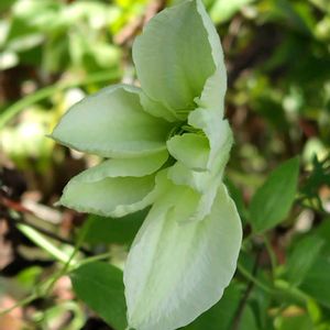 今朝白いクレマチスのお花が咲いていました❇️🤍❇️ 咲いていたのはスイセイ2号の鉢植えですが、お花の色が違う…?💜✨ 隣の鉢植えのテクサのツルが伸びて来て咲いてるのかなぁ〜🤔