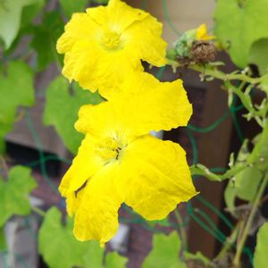 もうひとつ、子ども園から😄 ①プランターに黄色い綺麗なお花が咲いていました💛✨ ②ふと隣を見ると小さなヘチマがぶら下がっていました💚
