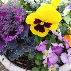散歩にてハボタン、パンジービオラちゃんです。