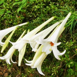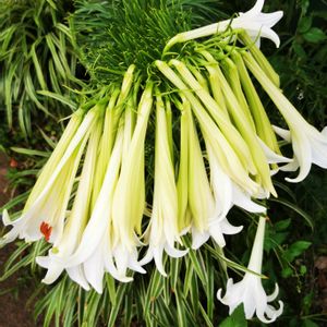 散歩してたら、凄い百合の花を見つけました。 1本の茎から、32本の花がついていました。🤩 ひとつひとつ、数えてみました。 3.4.5.は、近所のサボテンが綺麗に咲いていました。 🏷️白い水曜日♡