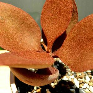 愛智園の『仙人の舞』。 仙人の舞さんは兎さん達と同じカランコエ属の多肉植物になります(o^^o) 原産地はマダガスカルで1950年頃に日本に初来日しました!また「金の卵」という別名もあります(*´꒳`*) 愛情をもって大切に育ててあげれば1m以上にまで成長してくれます(o^^o) カランコエ属なので、兎さん達と同様に寒さに弱いです。なので冬は温室か室内にて越冬させていただければ元気に1年を過ごしてくれます(*´꒳`*) 仙人の舞さんの特徴は何と言ってもベルベット色の粋な葉です! 成長と共に下葉が枯れてきますが、その時の下葉もいぶし銀が感じられてかっこいいなといつも思います(o^^o) 少し変わった個性あるカランコエ属の仙人の舞さんは、同じ空間にいる人に時間の大切さや命の尊さを改めて感じさせてくれる素敵な家族になってくれるはずです(*´꒳`*)