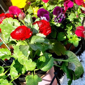 ❤️💚ラナンキュラスとビオラ💛💜 モリモリになってきたビオラ💛💜 第2弾目のラナンキュラスは一回り小さくなって、一気に3つも咲いています🎶 まだ蕾がいくつかあるので楽しみです☺️