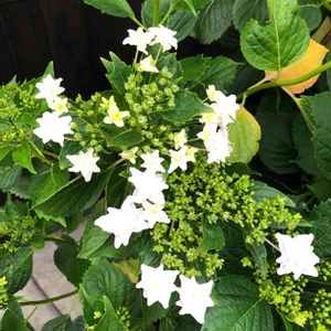 アジサイ隅田の花火という園芸種だそうです。 イメージの花火🎆は去年の夏、我が家の広〜い庭から1万発打ち上げた内のひとつです📣