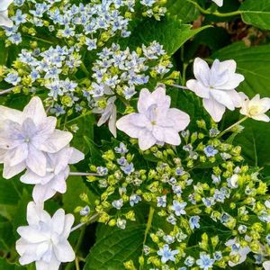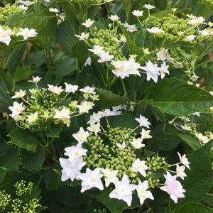 紫陽花・第7弾。 我が家の玄関先に咲き始めた額紫陽花の『隅田の花火』。 おそらく21〜2年前に『こんな綺麗な紫陽花があるのか。』とホームセンターで、多分1500〜1800円くらいで買って来たモノ。 花が終わったのを母親が直植えしたら、ほんの数年で大株になりました。