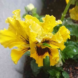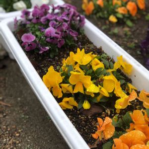 散歩コースの公園で。 この公園はビオラでなくて パンジーが土植えと 沢山のプランターに植えてあります。 花が大きいのでパンジーですよね? 花の大きさ以外見分けがわかりません。 此方は昨日曇り時々雨で今日は 天気🌞です。