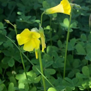 散歩先でクローバーの花? 違ってたら教えてくださいませ。 オオキバナカタバミのようです。 ありがとうございました。