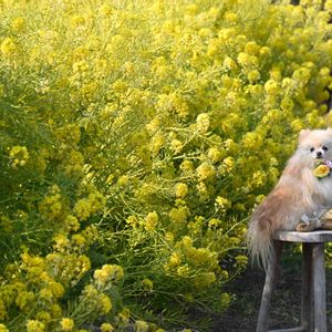 大神ファームに行きました。 うちも🐶を連れて行ったけど、 此れはうちの🐶ではありません。 このわんちゃん、お花🌸を つけてもらっていました。