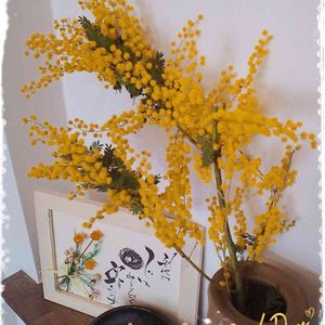 昨日の雪で折れてしまった ミモザの木黄色い蕾がいっぱい 可愛そうなので✂️して暖かい部 屋に🥰ゞ・・花が咲いてくれる こと願って💕(*˘︶˘*).。*♡♪~