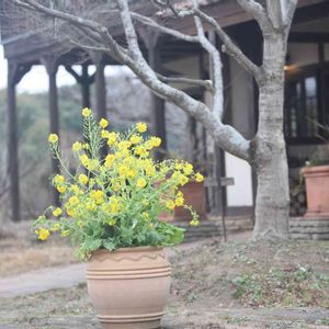 大神ファーム 建物の前の菜の花が 生けてあるのも写真撮りたくなりました。 入り口には菜の花とミモザが 生けてありました。