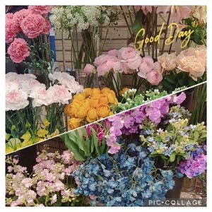 お花屋さんの前で待ち合わせ中にパチリ📱💠 色とりどりのお花たちに心が癒されます✨💕
