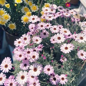 三年目の マトリカリア 鉢から溢れんばかりに咲いています♡ オステオスペルマムダブル モリモリしてきました♡
