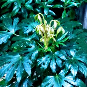 𓈒𓏸𓐍 ヤツデの新芽🌱 𓈒𓏸𓐍 ・ヤツデは、ウコギ科ヤツデ属の常緑低木。 太陽燦々と新芽🌱が〜💖 🏷これなんだろうクラブ 🏷もしもしクラブ