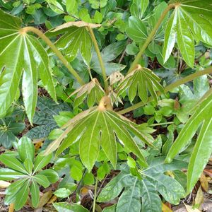 防風林の中に、ヤツデの新芽が生えてきてたよ~😳 …なんか、形がエイリアン👽みたいに見えるんだよな~😅