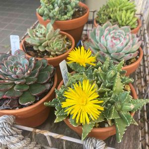 多肉が咲いてた👀 名前は覚えないタイプなんで わからない 名札📛刺さってるじゃんと💦 つっこまないで♪(´ε` ) 久しぶりの多肉pic