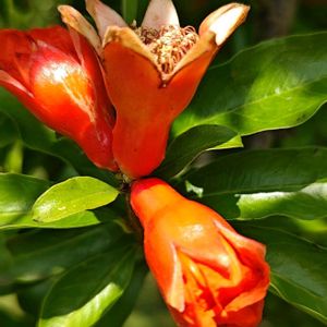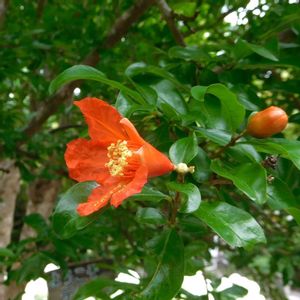 7月1日 今日のお花 🏵️🌿 ザクロ 🌿🏵️ 果樹として知られるが、朱赤の花も美しいです。 枝には鋭い棘が多い。実は秋に熟し生食される。果実が小さいヒメザクロや、八重咲きで果実ができない重弁のハナザクロもある。 花期:6〜7月