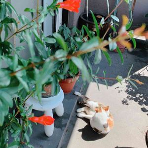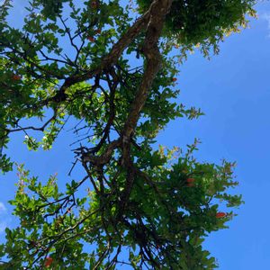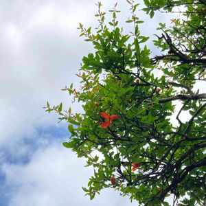 気持ちのいい日 赤くてかわいい柘榴の花 毎年、食べ頃を逃してしまってるので、今年は食べられますように。