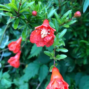 柘榴の花がここ何年も咲かなかったのに いくつも咲いててびっくり🤭 理由はなんだ⁉️ 1.今年はどの花もよく咲く 2.冬に腐葉土でマルチをした 3.活力剤の液体HB101を2.3度あげたことがある 4.おっと、クリスマスローズを植えるために近くを耕したりもしたぞ 全てがあってのことか? まさか③だけじゃないよね? このまま実がなるまで行くといいなぁ😚