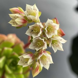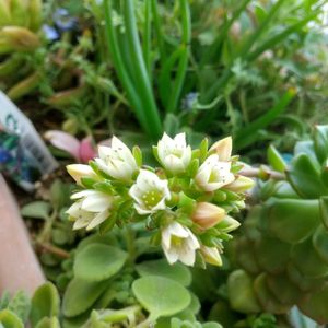 多肉植物 「レディジア」の花 4月28日am6:13頃 ✧p📷qω•,,´)パシャ✧ 365日 屋上の空の下にある多肉植物寄せ植えの鉢 3鉢に沢山咲いてきているレディジアの花 小さな花が可愛いです。 2019年の暮れあたりに作った1つの寄せ植の中にあったレディジア 沢山増えましたよ。 幾つあるんだろう🙄 無数🤭