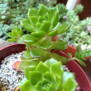 寒さにあたって綺麗に色づいている、セデベリア レティジア✨ 子株も可愛い(ノ≧▽≦)ノ💕 下葉を取ってみたら、みどりんのベビーちゃんもいました❗😃 もう少ししたら、仕立て直ししたいな🎵
