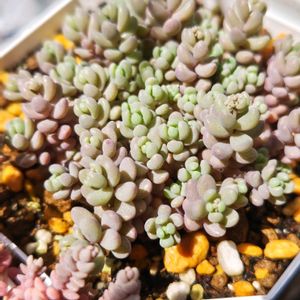 アラ お花が咲くのねー セダムケープブランコ パープルヘイズ 今まで見た事無かったのです セダム ケープブランコは ミセバヤ 白雪と同じ鉢に 植えてたのですが 白雪は見当たりません😅 もしかして同じものかしら? 調べたら混乱😵💫 やーめた❗️ パープルヘイズの花も咲くのね ずーっと居るのに初めてです
