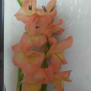 8 / 8 薄橙色の グラジオラス 今年は昨日7日から立秋 🌾立秋の15日間位いが最も暑いですね☀️ 🌻残暑お見舞い申し上げます🎐