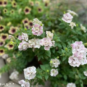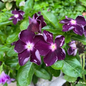 .ꕤ*❀❀ニチニチソウꕤ*❀❀ 万葉の美シリーズ 藍染め絞り&東雲(しののめ) ① 藍染め絞り➰絞りわかりますかぁ〜分かりにくいです🤣 ② 一度も切り戻ししていないけれど〜元気にたくさんお花咲かせてくれます💜 ③ 藍染め絞りの横のペチュニア シャドーさんも切り戻しせずに 春の初めからずっと咲いてくれています〜色の変化も楽しめてお手間の掛からない良い子です💛🤎✨ トレニア セレスティアさんは 半分の高さにピンチしてまた咲き出しました🤍🤍🤍🌿 ユーフォルビア ピンクフロストさんもまた元気を取り戻して咲いて来ました♡♡♡しおれ気味だったの〜 ④ 東雲〜絞りをアップ ⑤ 引いて見ると絞りがわからない〜しかもエンジではなくて朱赤なんです🤣オモッテタントチガウ この子は8月はじめにピンチ✂️しましたぁ〜 出遅れて思うニチニチソウに出会えなくて…渋い子にやっと出会えたと思ったら…明るめ🤗ですが頑張って可愛いです💓 台風15号🌀接近中😰 大雨警戒〜皆様も気を付けてお過ごし下さいね♡