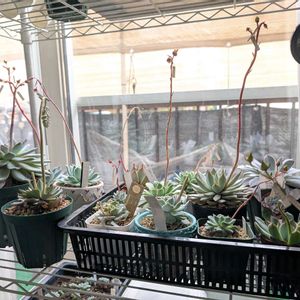 こんばんわ😊 昨夜から良く☂️が降りました😅 会社に居たので凄さが良く分からないですが、数名からニュースで☂️が凄いって流れてるけど大丈夫?って連絡が来まして😱😱😱 明日の朝、お外組は確認しますね🥺 今日のお花『エケベリア』さんを。 って、エケさんぢゃない子も写っていますが😂 少し前の写真になります(*^^*) どの子も可愛い子達です🤗!