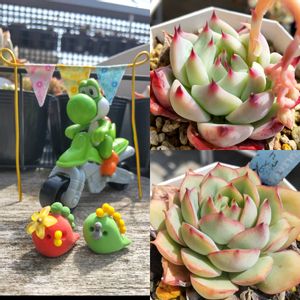 よっしーさんお元気ですかー?🤣🤣🤣 4/4は 🏷️よっしーの日 🏷️一日遅れてめんごめんご ヨッシー記念館で ガオータン♂️♀記念撮影📸 ガオータンにとってヨッシーはレジェンドだもんね?🤣🤣🤣 🌵添え多肉✨ エケベリア属 #ルビーブラッシュ #キャプテンhyb この時期はかわちくていいねぇ😌💕