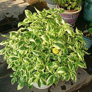 斑入り葉のキバナランタナ💛 去年より綺麗に斑が入りました👌✨💛 久しぶりの晴れ間☀ 喜ぶべきなのに💦 暑くなりそう~😱