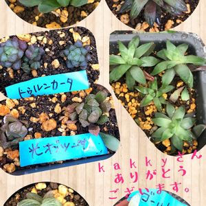 先日、kakkyさんのぷちプレ企画に応募しまして、ありがたいことに当選させていただきまして、ハオさん御一行が我が家にお越しくださいました😆💖 kakkyさん、ありがとうございます❣️ 花鏡の他はどの子も初めましてで、じっくりみつめてしまいます☺️ 花鏡もうちの子よりプックリぴちぴちでお色も姿形も凛々しく素敵なんです! 大切にお世話いたします💖 この度はご縁をありがとうございます😊