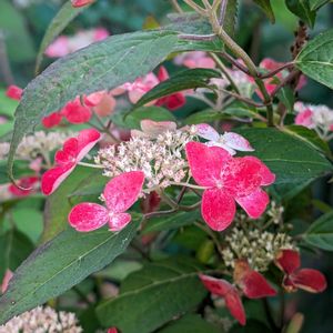 土曜の朝の撮影です。 赤くなり始めると早いですね。 カシワバアジサイにも少し赤が入ります。