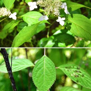 7/18 筑波山 この時期山の中にはあんまり花はないですねえ。 出迎えてくれたのは「ヤマアジサイ」ちょっと緑っぽい花序のと白い花序😍