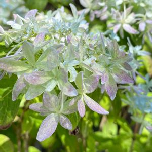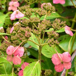 ヤマアジサイですけど、白い花序がピンクとかに変わるのも多いんですが、なんか全体的に緑がかってくる株も結構多いです😊 なんかとっても不思議な色合いに思えます。