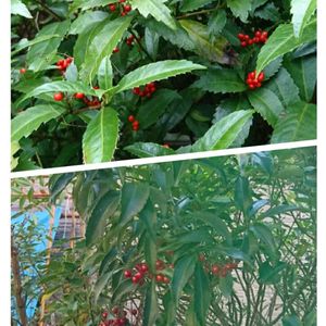 おはようございます😄… 今日は 庭の赤い実にしました😋… 千両 万両です👀… 千両は 軽いから赤い実が葉の上に 万両は 重いから葉の下に付いてるらしいです🤔… なるほど…