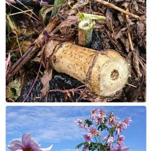 こんにちは😄… 昨日は 急な寒波で うっすら雪が積もりました… 泣く泣く昨日 切り戻した 皇帝ダリアさんの株元です… 下のpicは 12/11のものです😋… こんなに早く 諦めるのは辛いですが 来年に また会うためです… 来年も 元気いっぱいの姿を見せてほしいなって思ってます🤗💕…