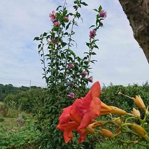こんにちは😄… 今日は 仕事が休みなんで 植物のお世話をしてます😘… 庭のノウゼンカズラ & ムクゲさんです🤗💕… 涼しくなってガーデニングシーズンですね🙌♪…