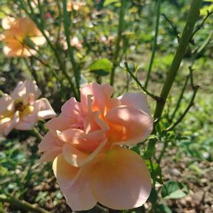おはようございます😄… 庭の ミニバラさんです😉… 5月頃に満開でしたが 涼しくなって少しずつ また咲き出しました😘… 名前はありませんが この色合いが大好きです🤗💕…
